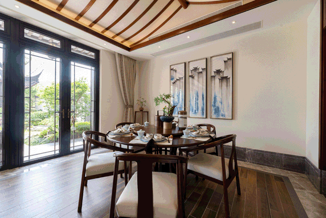 新中式风格的门窗,可以考虑红酸枝色、金橡木色、柚木色等典雅木色系,方寸之间,皆是雅韵。